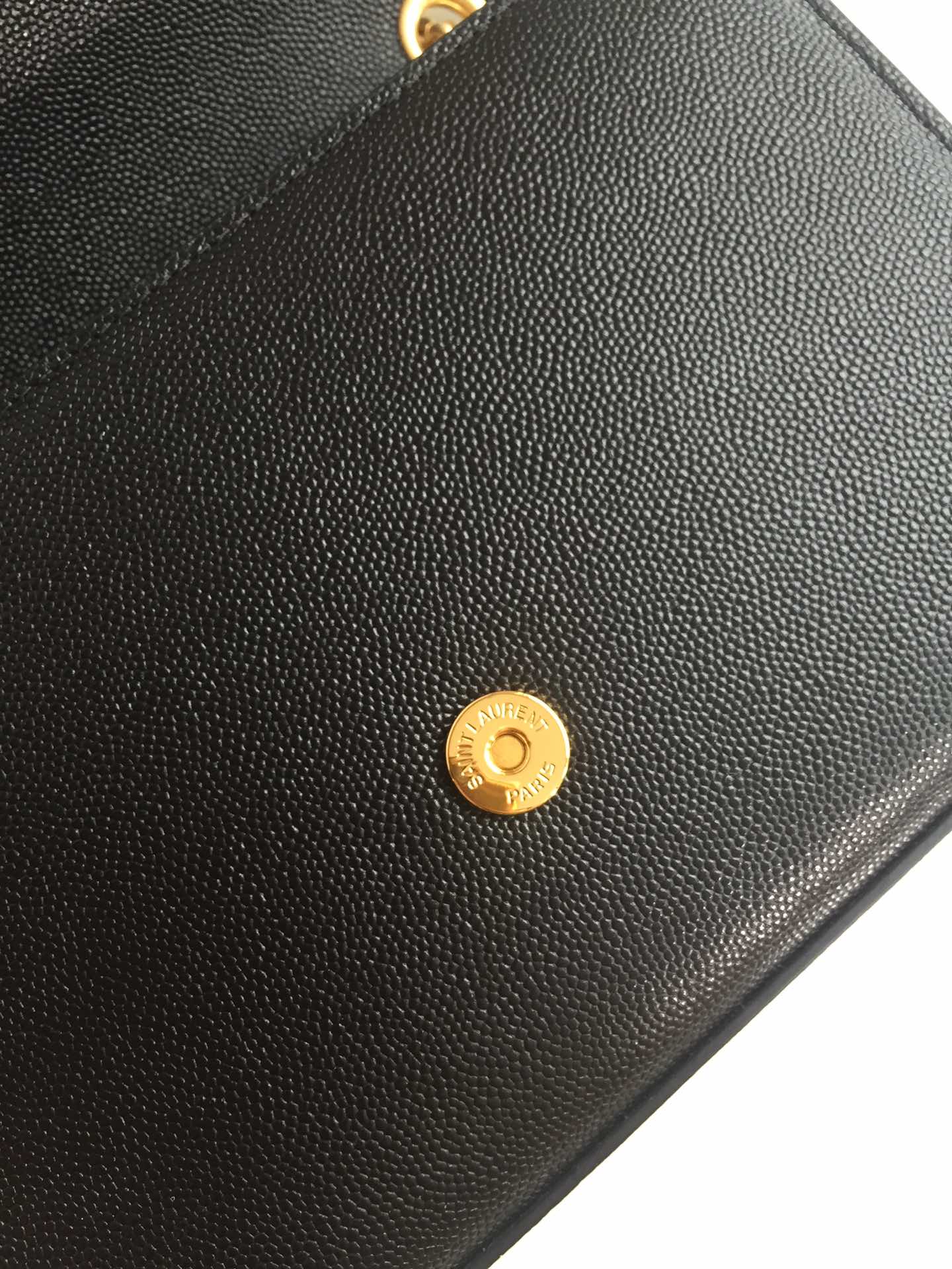 经典SAINT LAURENT GOURMETTE颗粒山羊纹理真皮链条单肩包 20/13/5cm 黑色