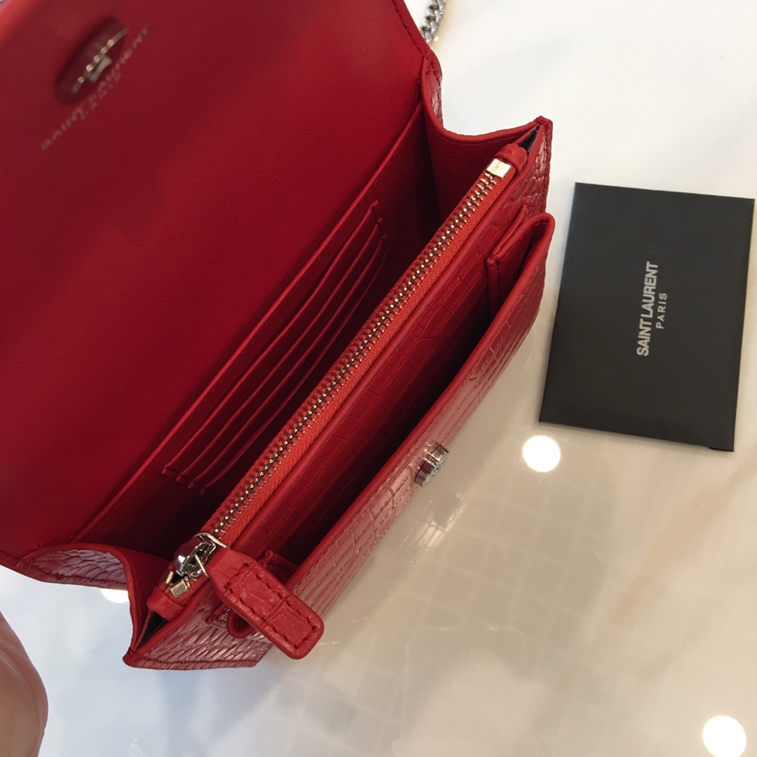 YSL 圣罗兰 Sunset链条包 原单鳄鱼纹牛皮 441943 红色 17/13/7cm