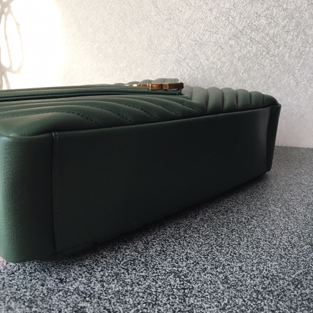YSL 圣罗兰 原单山羊纹32cm 全套包装 392738 祖母绿 金扣 V型包 手提单肩两用