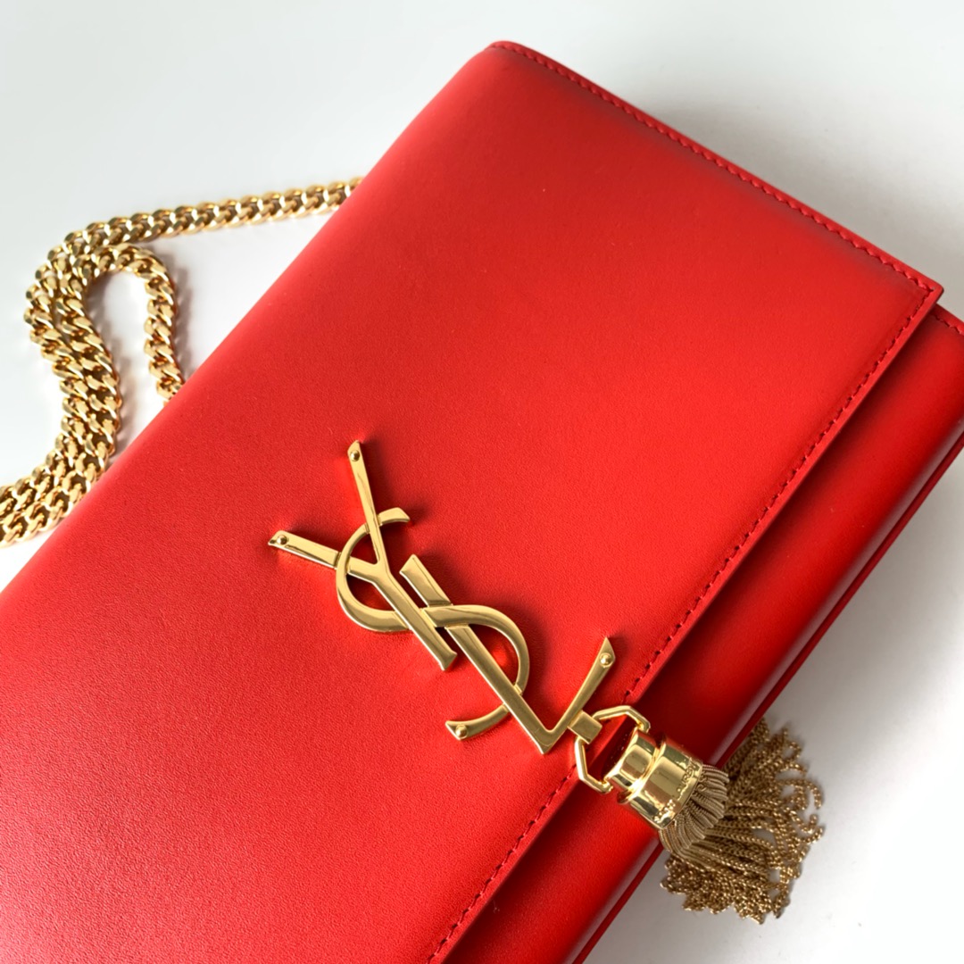 YSL 圣罗兰 24cm 经典 百搭KATE流苏链条包 377829 红色