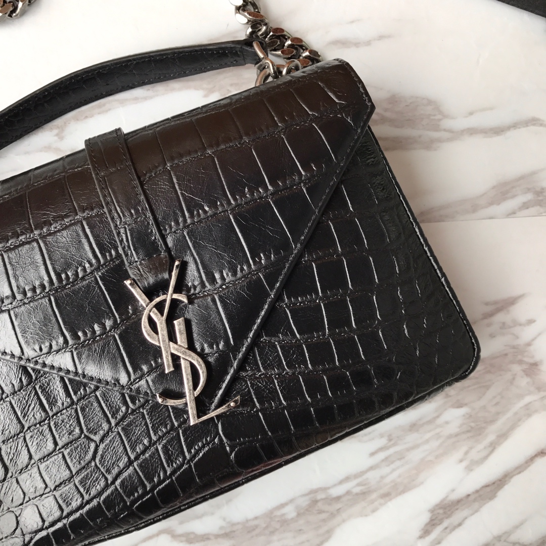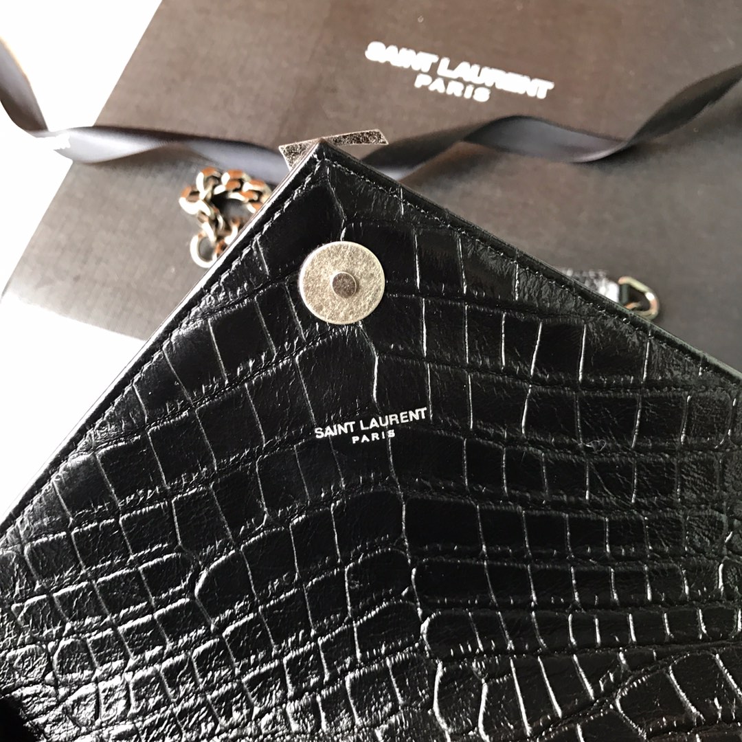 YLS圣罗兰 顶级原单经典中号鳄鱼纹手提包 欧洲进口原厂山羊皮 搭配金属链 真皮可拆卸肩带 尺寸24.17.7 cm
