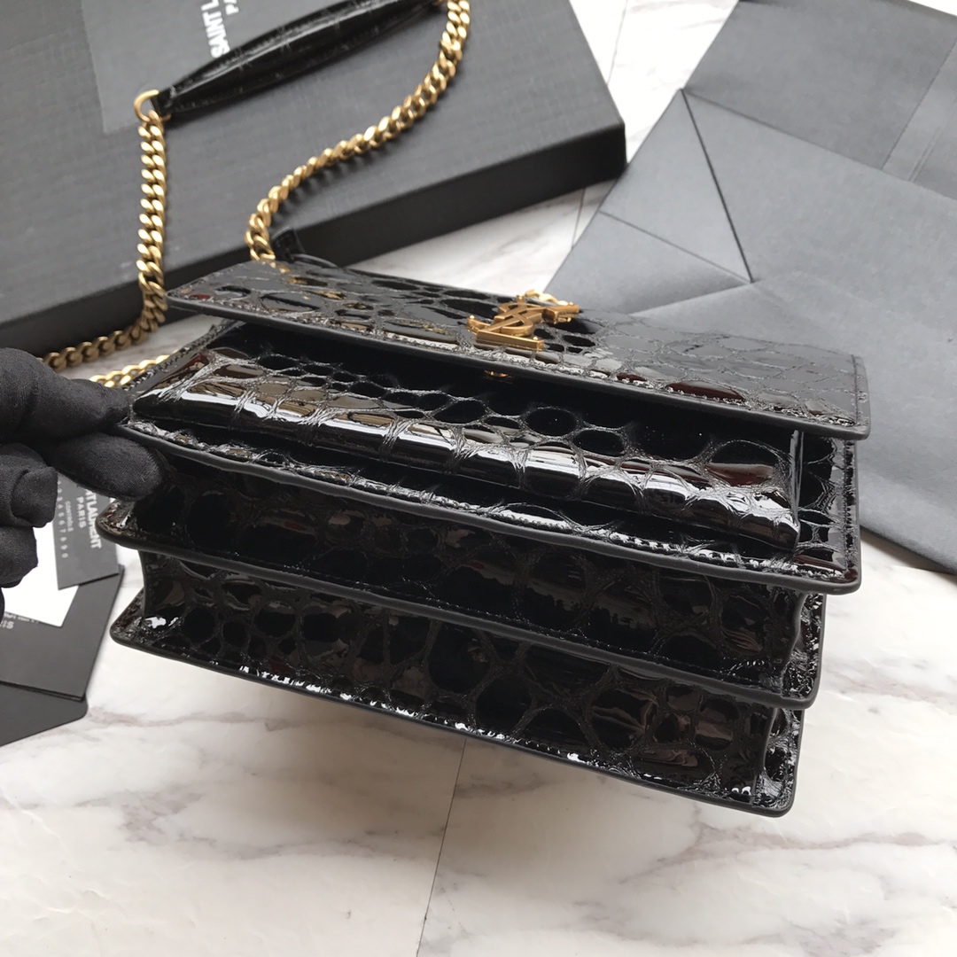 YSL圣罗兰 最新款sunse漆皮浮雕龟纹 前翻盖手袋 顶级原单进口牛皮 22cm