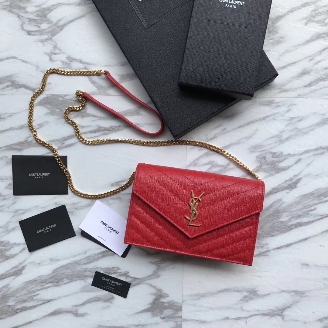 YSL圣罗兰 鱼子酱球纹链条挎包 19×12.5×4cm 大红