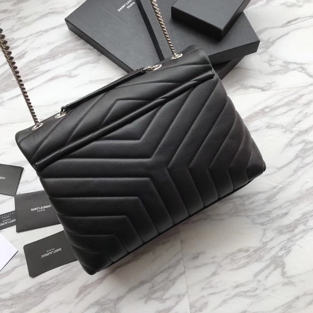 YSL 大号长形信封挎包 经典柔和造型前翻盖包 带金属联结YSL标志 金属和真皮链条肩带以及Y字形拼接缝合 尺寸32x22x11