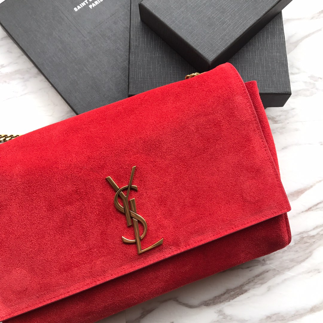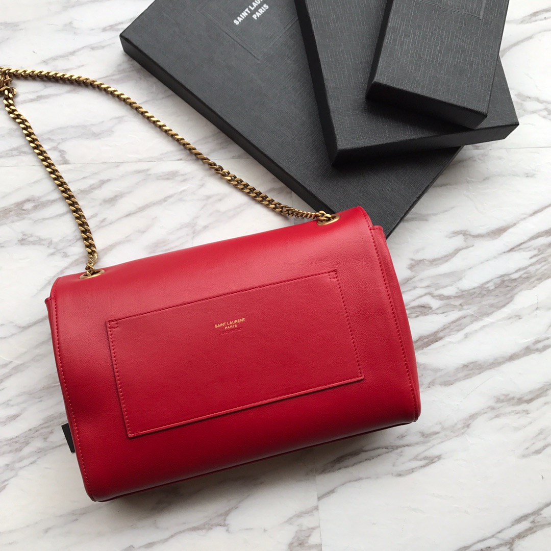 YSL圣罗兰 原单进口新款南非牛皮 一面平纹 另一面磨砂皮,一包两面用,顶级原单 原版铜链 非常的软很难定型一个袋子手感细腻 每一个细节都与正品零 差距 尺寸28cm