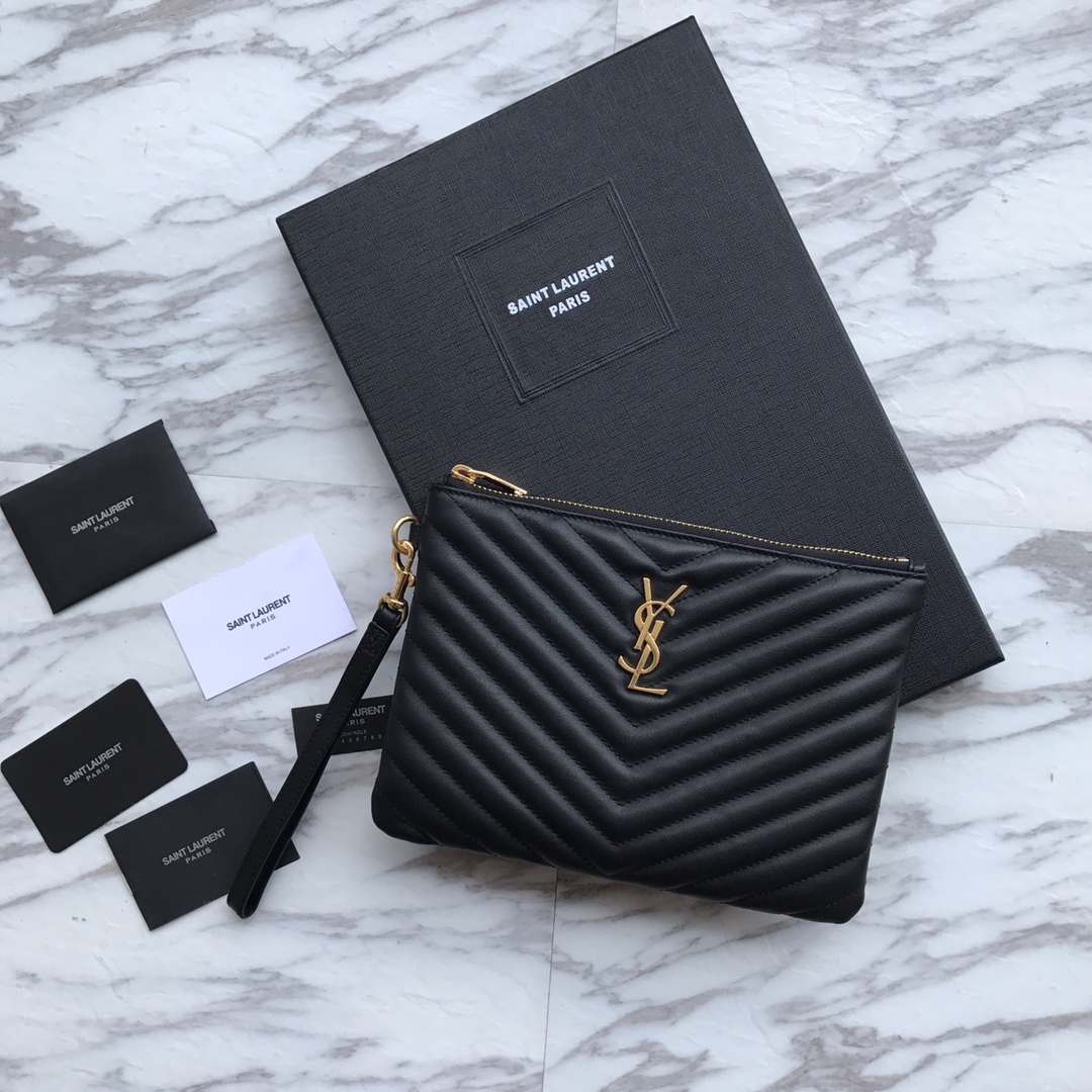 Saint Laurent Paris/圣罗兰2019春季新款黑色经典手拿包 小牛皮拉链,小号24x17cm