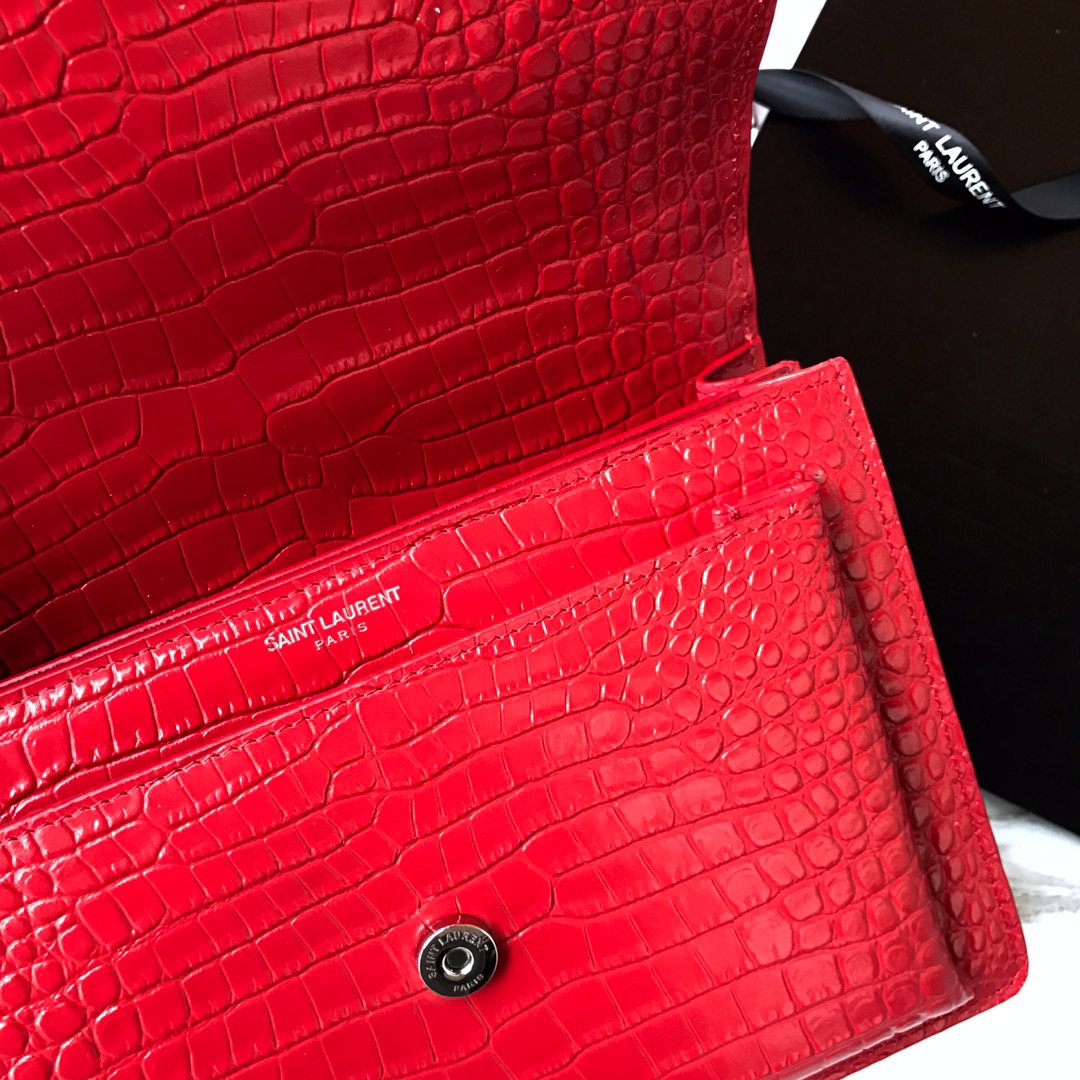 YSL圣罗兰 专柜最新款 前翻盖手袋 顶级原单小鳄鱼 22*16*8 大红