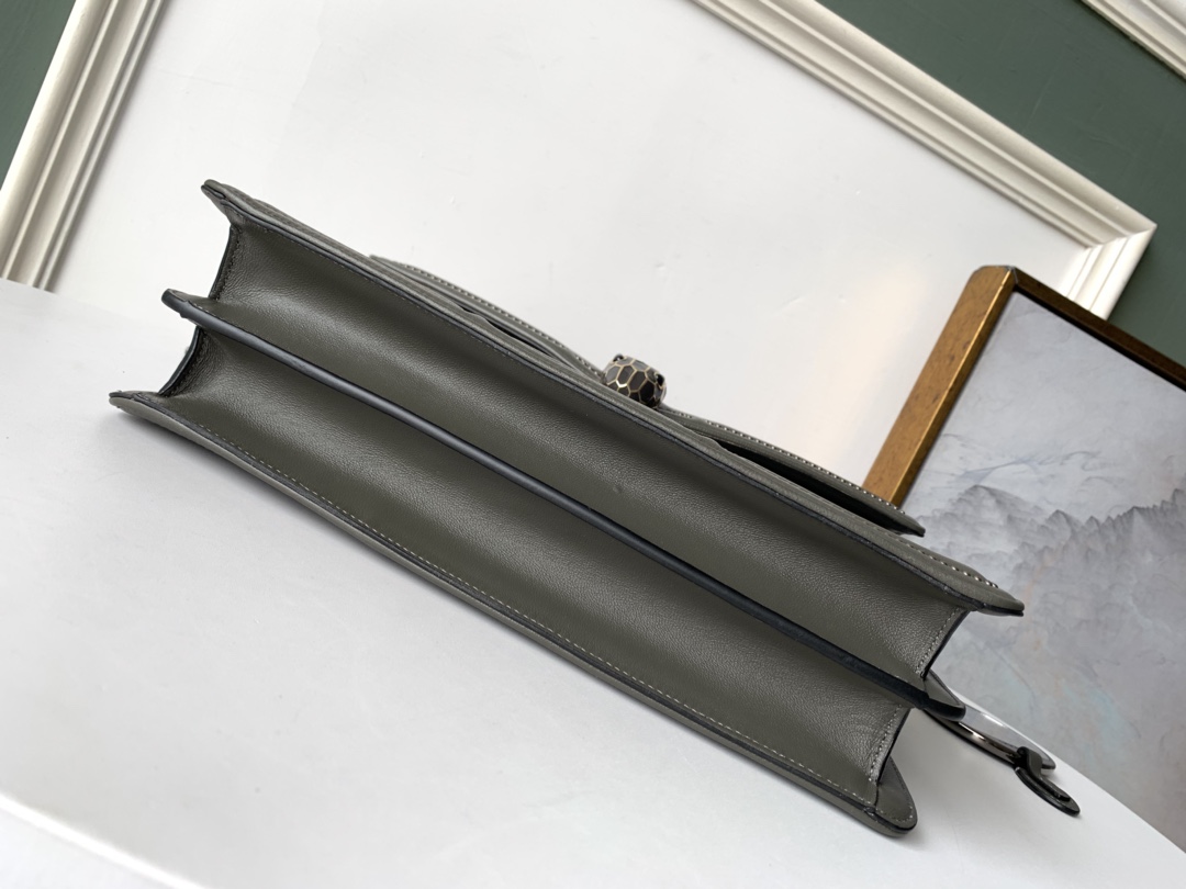 全套包装 BVLGARI 宝格丽 “衍缝网格”图案翻盖包 里外小羊皮 蛇身链