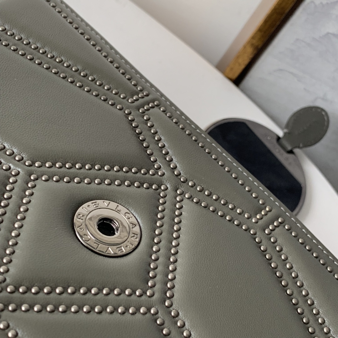 全套包装 BVLGARI 宝格丽 “衍缝网格”图案翻盖包 里外小羊皮 蛇身链