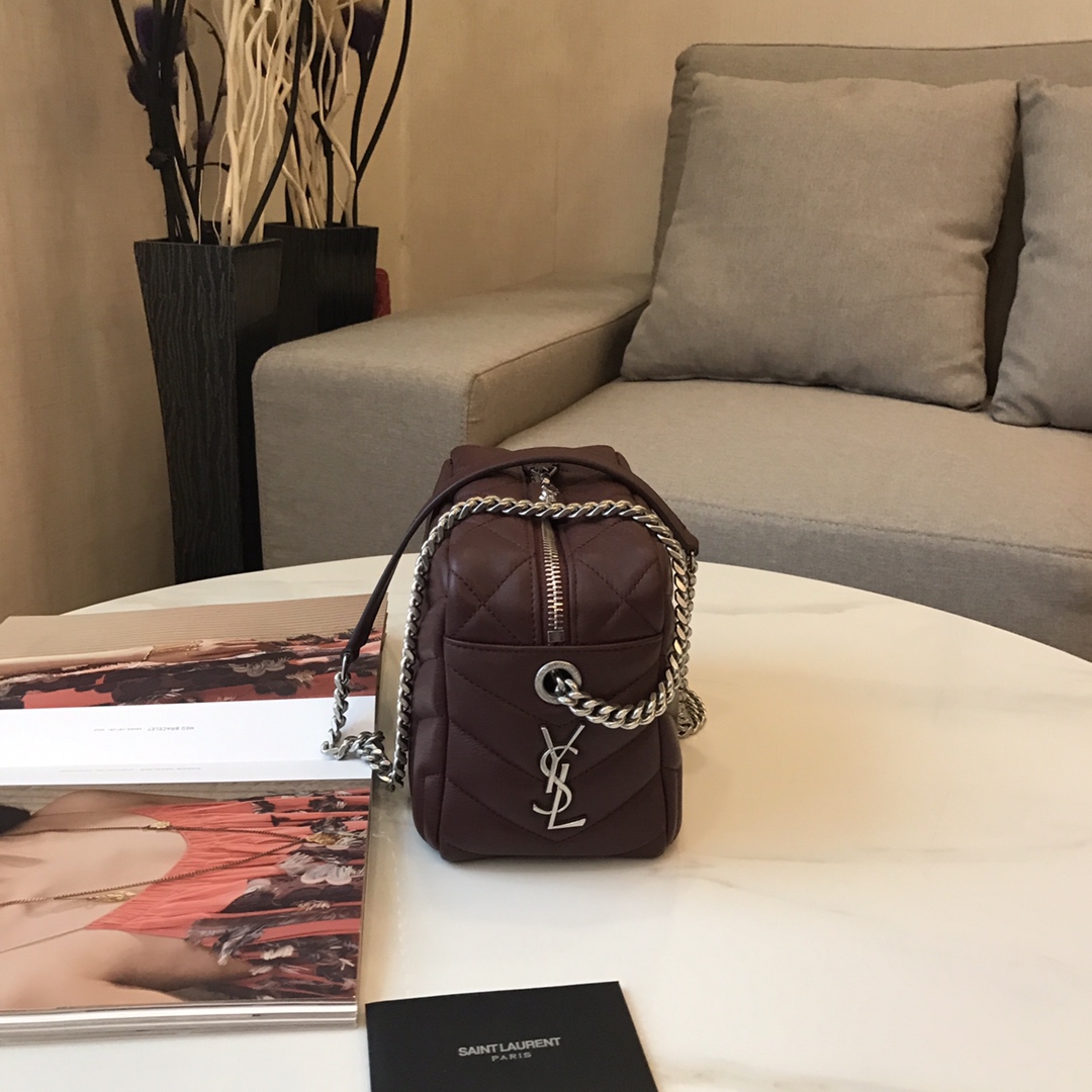 YSL 圣罗兰 492737 保龄球包 双拉链封口 头层皮 21/15/12cm 酒红色