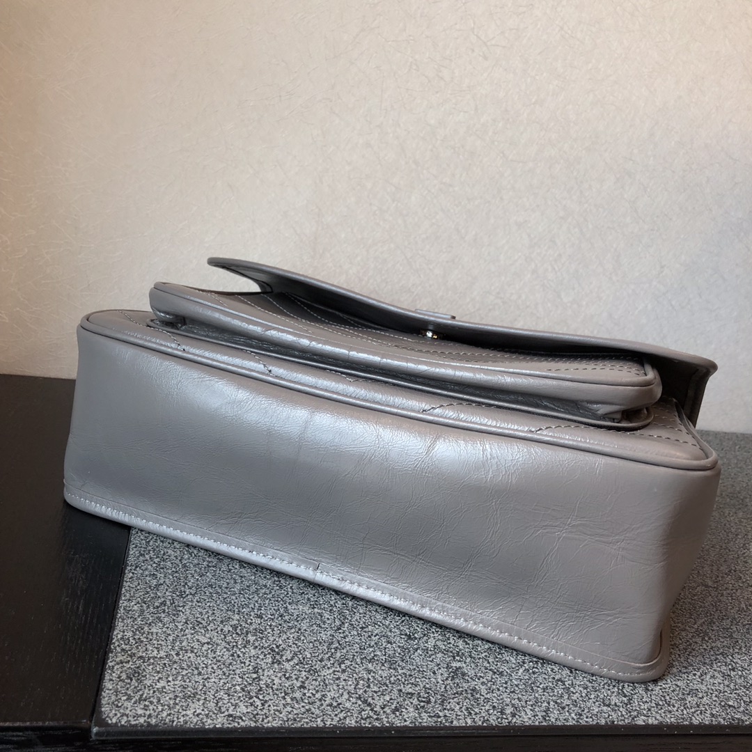 YSL 圣罗兰 超级爆款NiKi 大号32cm 全套包装 油蜡牛皮材质 浅灰色