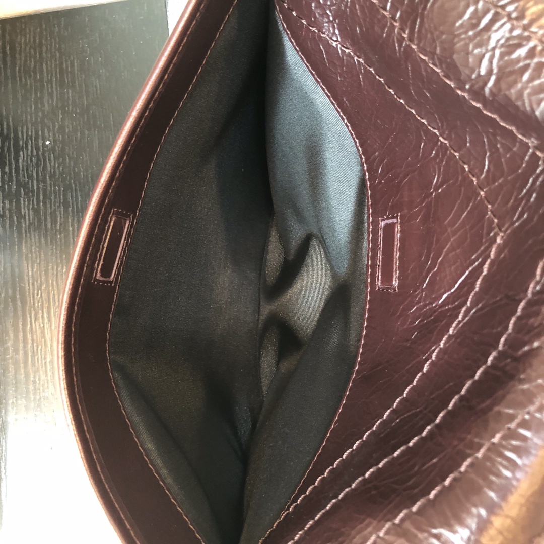 YSL 圣罗兰 超级爆款NiKi 大号32cm 全套包装 油蜡牛皮材质 酒红色