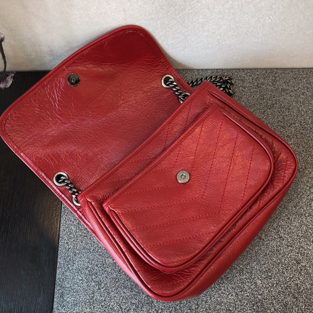 YSL 圣罗兰 中号 Niki褶皱绗缝链条包 498894 油蜡牛皮材质 28/20/9cm 红色