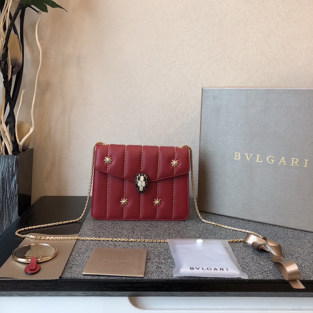 BVLGARI 宝格丽 小羊皮 “Sepenti Forever”翻盖包 珐琅蛇头扣环 红色